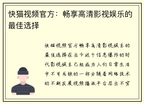 快猫视频官方:畅享高清影视娱乐的最佳选择